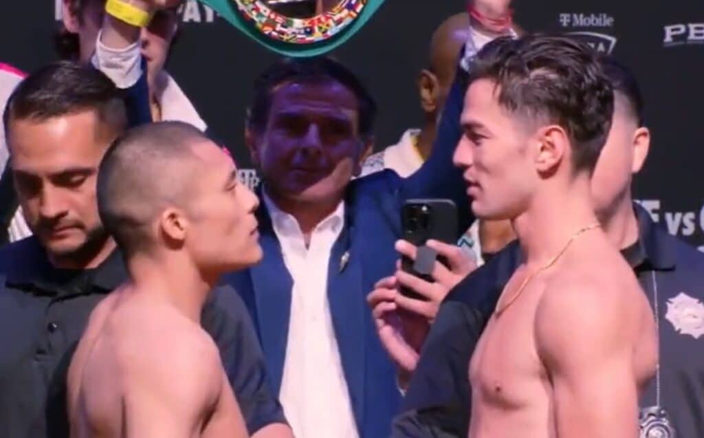 Cabrera detuvo la báscula en 134.2 libras, mientras que Cruz hizo lo propio con 134.6 libras, ambos se mostraron en impecable forma física y “Pitbull” advirtió a Cabrera con la frase “Puro puño de comer a ese bocón”.