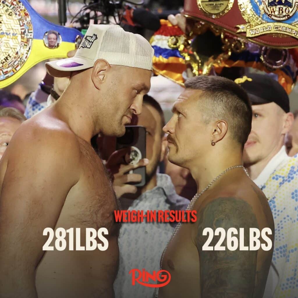 Oleksandr Usyk y Tyson Fury registraron los pesos más altos de sus carreras