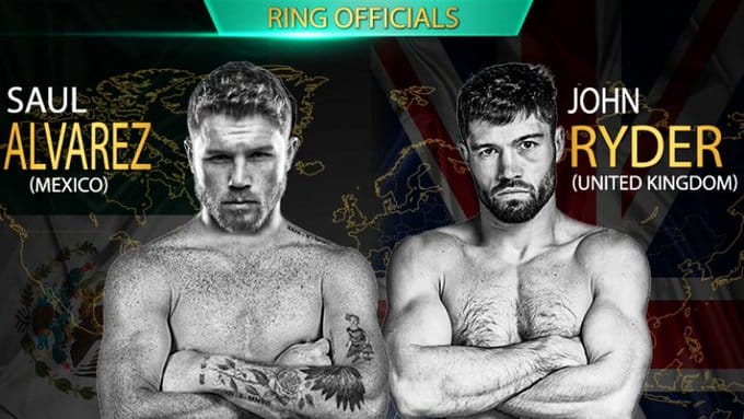 Saúl “Canelo” Álvarez subirá al ring con una destacada marca que consta de 58-2-2, 39 KOs, mientras que el inglés John Ryder, hará lo propio con un buen récord de 32-5, 18 KOs.
